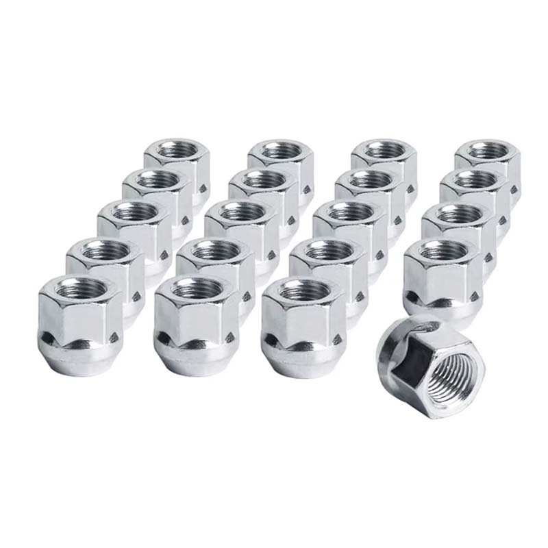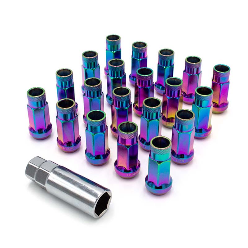 كل صامولة ذات نهاية مفتوحة M12x1.5 مصنوعة من فولاذ 50BV30. بالمقارنة مع صواميل الفولاذ الكربوني العادية، فإن مقاومتها للصدمات تزيد بنسبة 20% تقريبًا. يسمح التصميم من خلال الفتحة بالتركيب المرن على مسامير العجلات الممتدة، وهو مناسب بشكل خاص للمركبات المعدلة مع غسالات سميكة بديلة أو مسامير طويلة من فئة السباق.